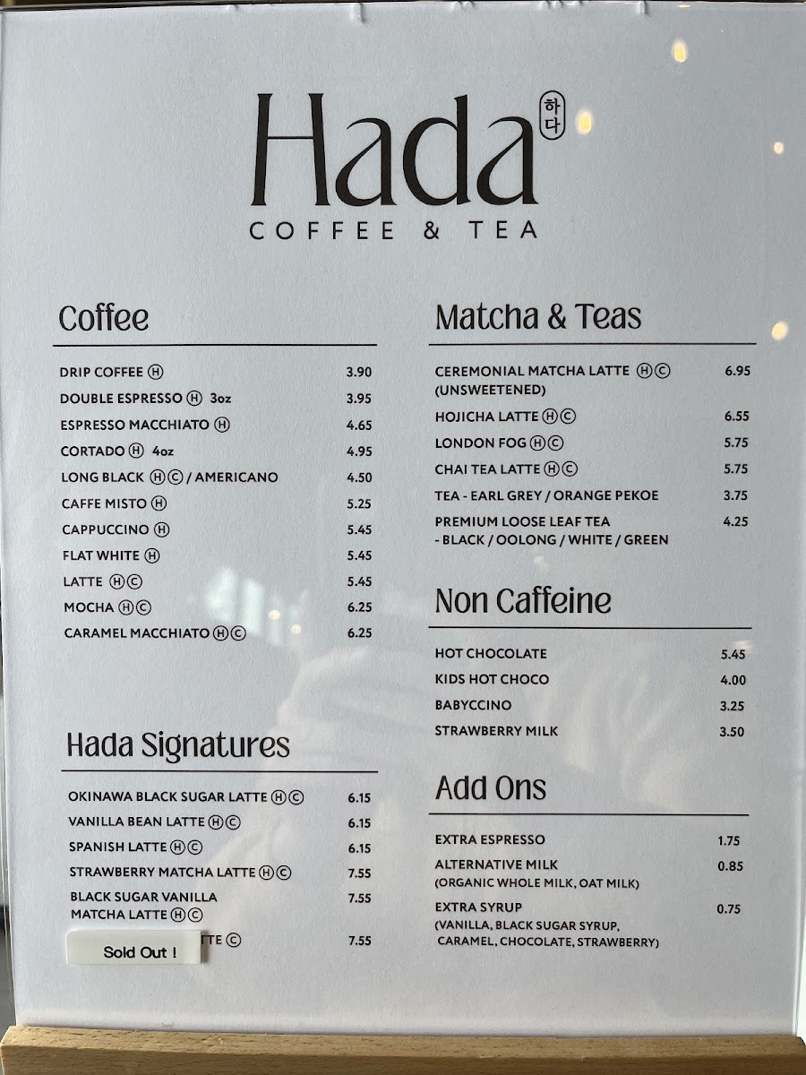 The café doesn’t stop at just drinks; their Hada Signatures menu features innovative beverages like the Strawberry Matcha Latte ($7.55) and the Okinawa Black Sugar Latte ($6.15), both of which are spectacular in flavor and presentation. Imagine sipping on a velvety blend of sweet strawberries and matcha or enjoying the smooth, unique notes of Okinawa black sugar—all crafted with care and attention to detail.